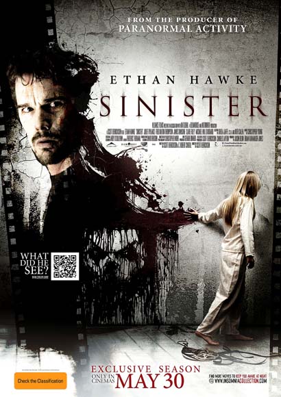 Notre commentaire : « Sinister » est plus un film d’épouvante qu’un film d’horreur. On joue à se faire peur, on se surprend à être effrayé, on s’étonne à angoisser, on s’ébahit à sursauter. Mais n’est-ce pas le but recherché ? Et bien cela fonctionne à merveille tant le réalisateur nous manipule. Rien de révolutionnaire certes, mais c’est efficace. On est placé en permanence dans une atmosphère inquiétante. La distribution est bonne, avec un Ethan Hawke très crédible. La musique colle véritablement bien au déroulement de l’histoire. Pour bien en profiter, il est préférable de se placer dans les meilleures conditions possibles. Dans le noir, la nuit. Sensation garantie !