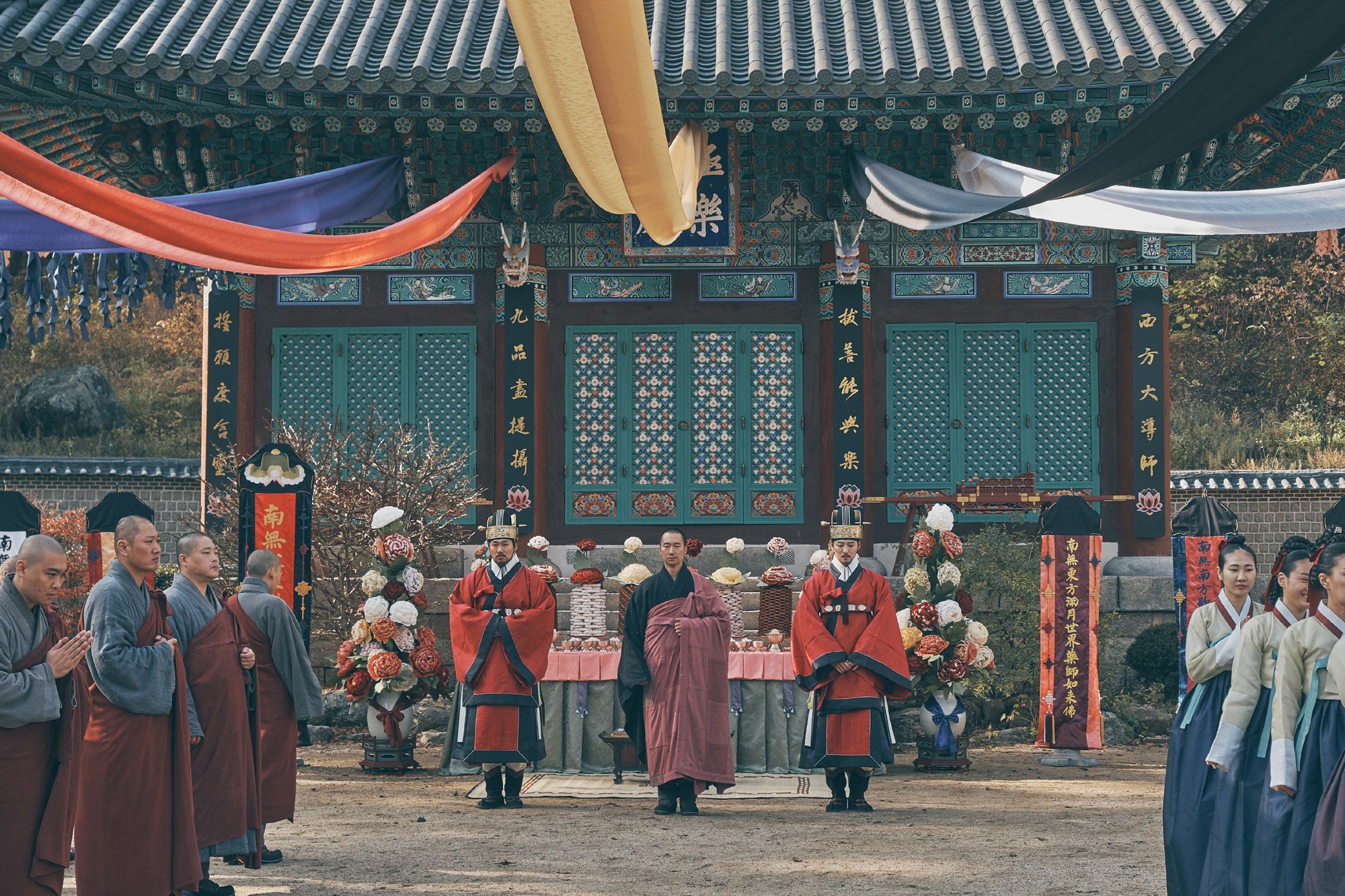 L’histoire proposée par « The King’s Letters » nous invite à suivre le Roi Sejong (Song Kang-ho), au milieu du XVe siècle en Corée, qui souhaite créer un système d’écriture simple afin que la population puisse s’alphabétiser. Jusqu’à présent, le royaume de Joseon utilisait les caractères chinois. Le Roi va faire appel au moine bouddhiste Shinmi (Park Hae-il), et à ses compagnons pour développer un nouvel alphabet. Les moines ont des connaissances uniques en raison de leur connaissance du sanskrit et d’autres langues qui utilisent des systèmes d’écriture phonétique. Le Roi Sejong promet de construire un temple bouddhiste en pleine capitale si les moines parviennent à faire aboutir son projet.
