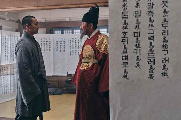 Du côté des personnages, c’est bien évidemment le Roi Sejong qui est au cœur de l’intrigue. Incarné avec justesse par  Song Kang-ho (The Face Reader), on le voit progressivement décliner en raison de sa maladie, et même baisser les bras dans la dernière partie, jusqu’à ce que la reine en personne vienne lui apporter les mots qui le remotiveront. Un roi qui aura laissé une trace positive dans l’histoire, œuvrant souvent pour l’intérêt de son peuple. Pour l’aider dans sa tâche, le moine Sin-mi va lui prêter main forte. Interprété par Park Hae-il (The Last Princess), celui-ci est clairement motivé par l’idée de pouvoir enseigner le bouddhisme aux coréens alors que ces derniers sont sous domination confucéenne. Il devra cependant faire des concessions et finira par se laisser aspirer par l’objectif du Roi et son désir d’alphabétiser la société. Le seul rôle féminin de premier ordre est tenu par Jeon Mi-seon (Memories of Murder) pour l’incarnation de la Reine So-heon. Celle-ci finira par se laisser mourir face au renoncement du Roi et sa volonté d’abdication.